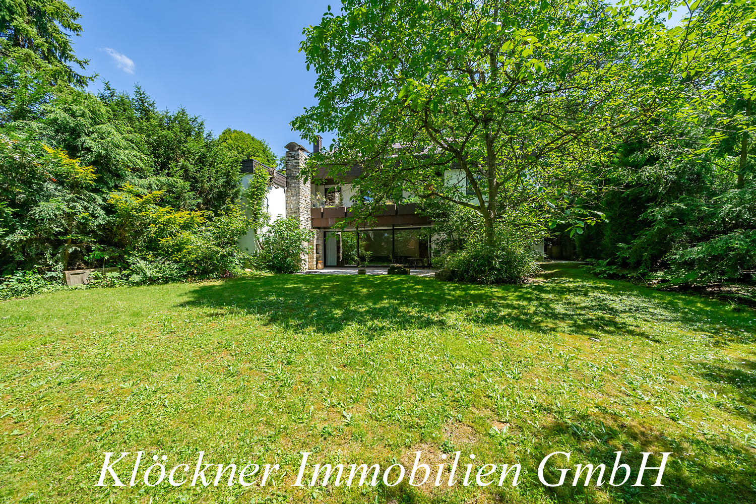 Die opulente uneinsehbare Gartenanlage mit atemberaubendem Parkflair umgibt die herrschaftliche Villa. Eine Doppelgarage macht diese Ausnahmeobjekt perfekt.
