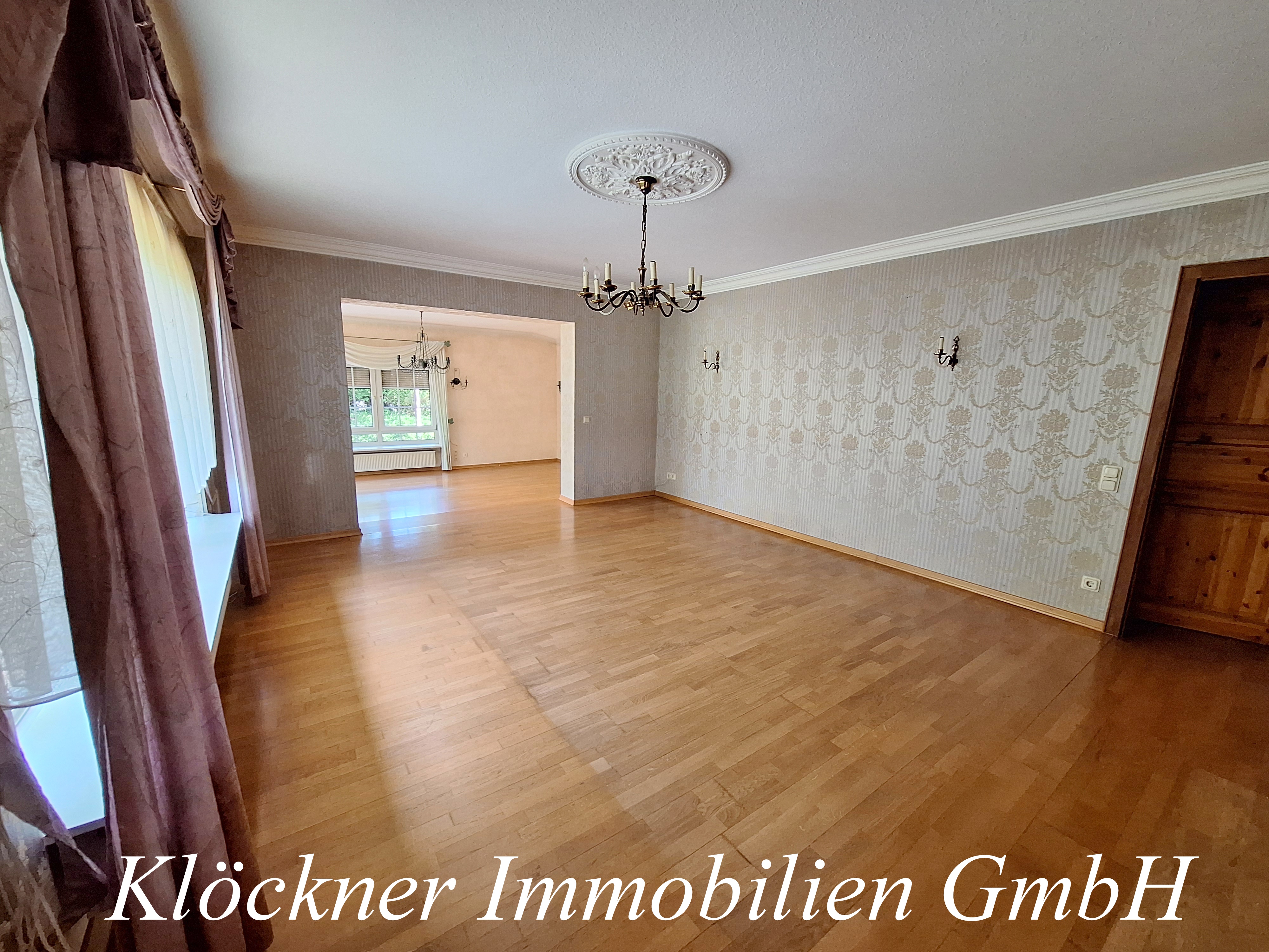 Die Immobilie hat 2 separate Eingänge. Der 1 Eingang bietet Zugang zu 2 getrennten Wohneinheiten. Durch die im Jahr 1989 durchgeführte Aufstockung wurde das Dachgeschoss ausgebaut. Auf ca. 150 m² befinden sich 3 Schlafzimmer, 2 Bäder, HWR, Küche, Wohnbereich und überdachte Loggia. Der sehr helle Wohnbereich besticht durch seinen Blick ins Grüne und durch die freigelegten Dachbalken.