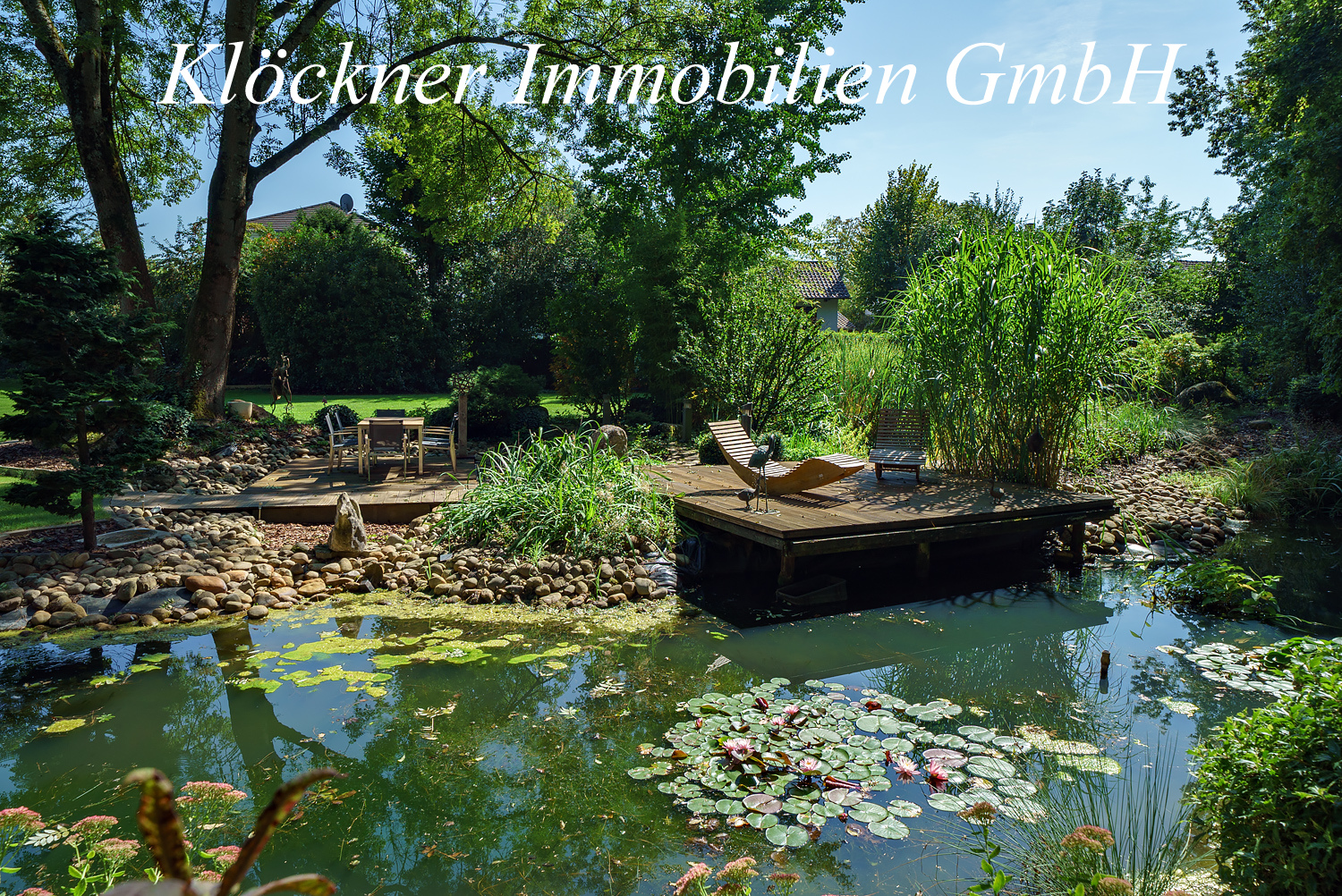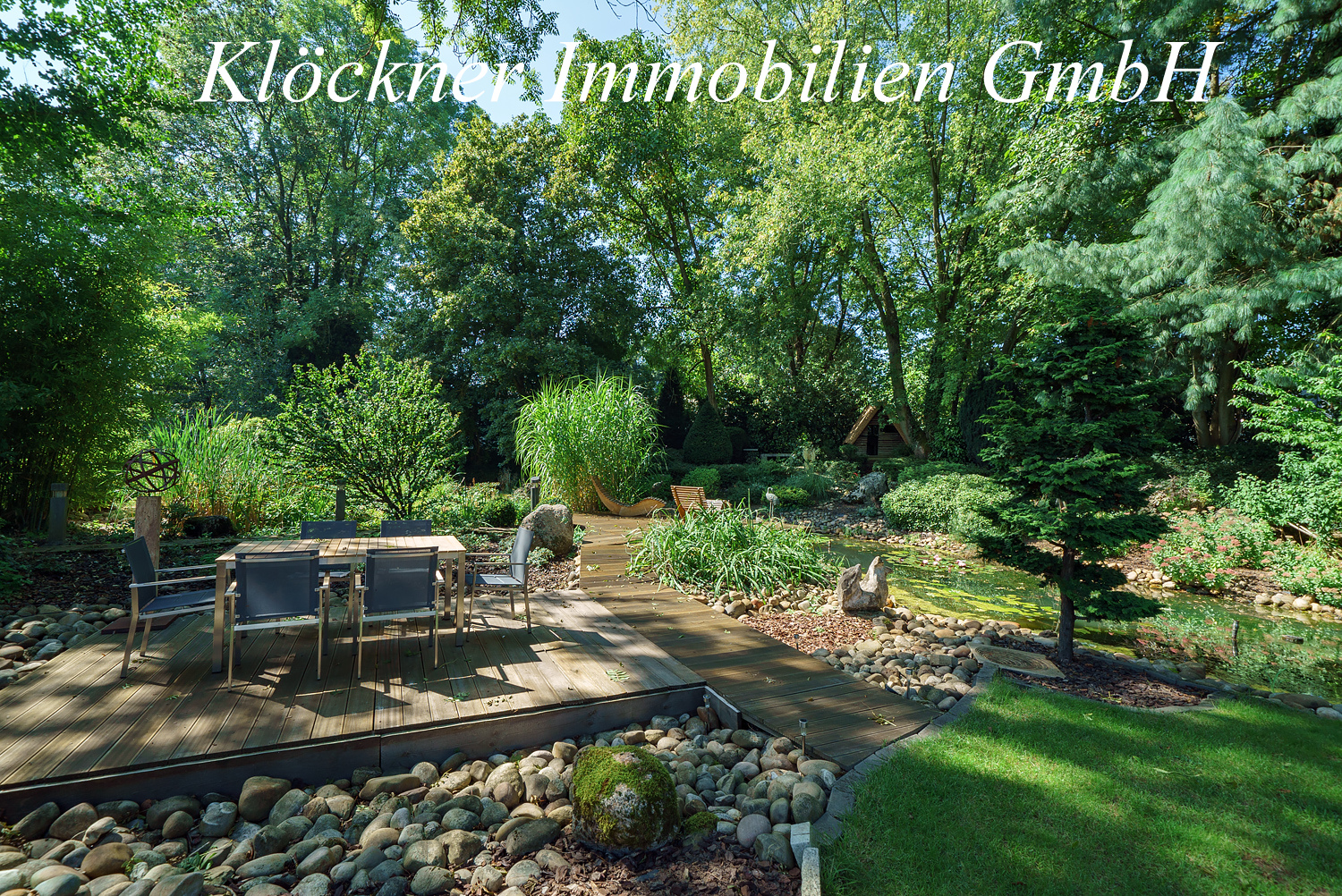 Highlight ist der hinreisend angelegte Park mit Naturteich, Sonnenterrassen und japanisch anmutendem Pflanzengarten. Komplettiert wird dieses hochwertige Domizil in ausgesprochen ruhiger Bestlage durch 3 im Haus befindliche Garagen und einer privaten Zuwegung.