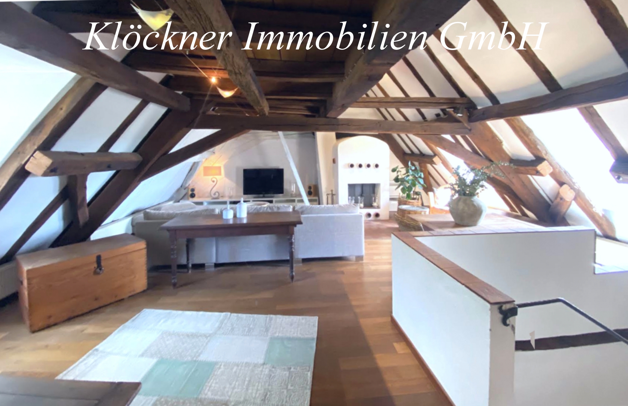 Im DG, die ehemalige Tenne des Bauernhauses mit ausgebautem Giebel und den freigelegten Holzbalken, befindet sich ein großzügiger Wohnraum mit einem Kamin und einer Galerie im ehemaligen Spitzboden. Hier befindet sich ein großzügiges helles Badezimmer mit Dusche und Badewanne, ein Schlafzimmer mit Ankleide inkl. Einbauschränken, eine Bodenklappe für Wäsche direkt in den HWR und angrenzend das Atelier, ein Kreativraum mit Sauna.